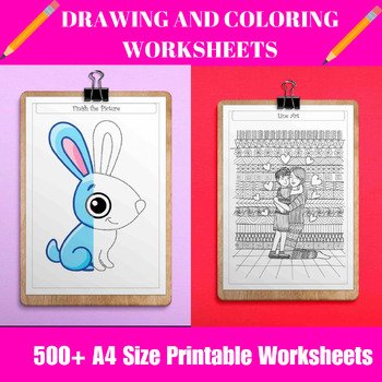 DRAWING AND COLORING WORKSHEETS 500+ A4 Size Printable Worksheets